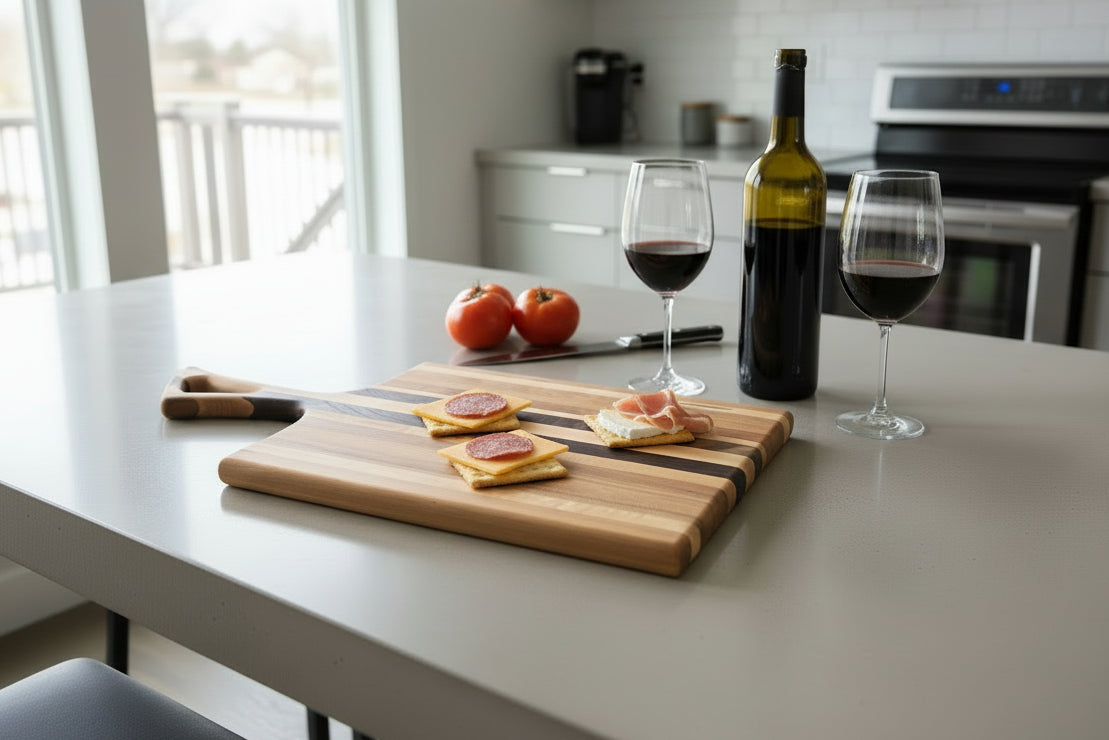 I recommend one 2 oz tin of my board butter to accompany each board purchase, which will keep your board protected and colors vibrant. Want a nice way to display your new board purchase? Check out my board stands! Board stands are not only for display; they give you a place to dry your board after washing so your board lasts longer.