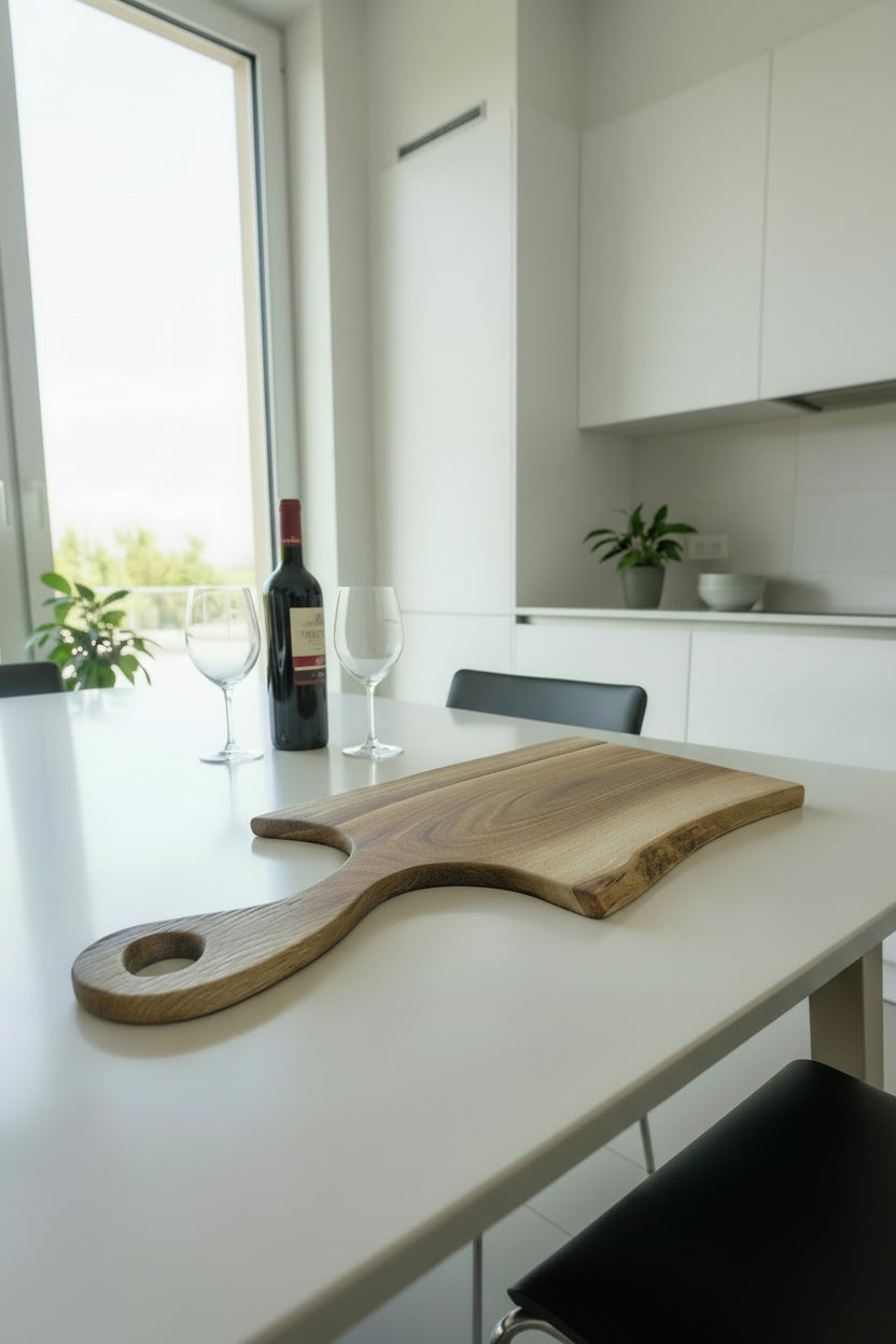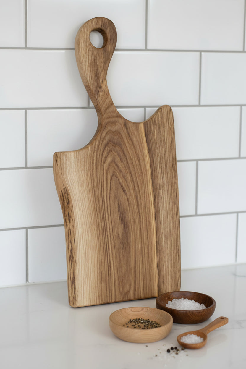 This live-edge board is made from a single piece of white oak. It will look amazing when serving company, or hanging on your kitchen wall!
